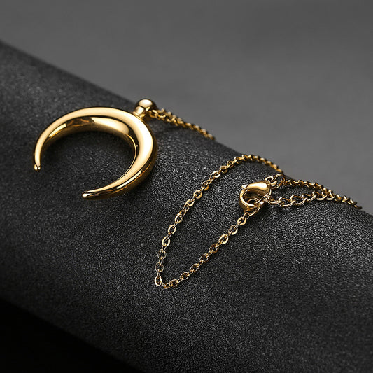 Minimalist Style Stainless Steel Horn Moon Pendant Necklace